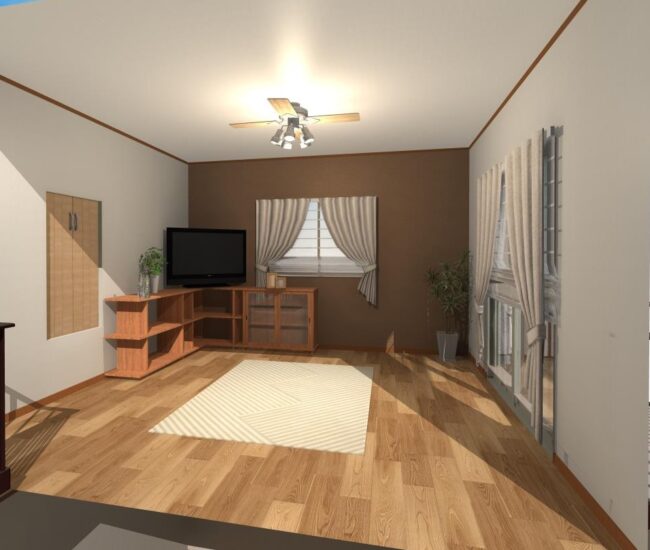 内装リフォーム完成3Dパース図を作成し、床、クロスなど全てイメージ通りに施工を進めさせて頂いております。 お客様にも大変喜んで頂いております。 後、リビングも施工予定ですので、又アップします。 2階 洋室① 施工中…