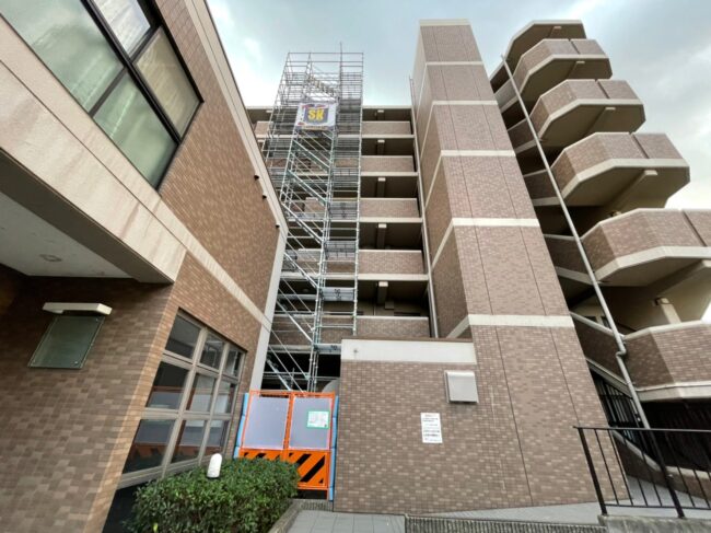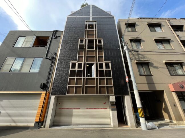 4階建てビルの正面の外壁塗装工事がスタートしました。黒へ変更予定ですので、又仕上がりなど、施工事例でも掲載致します! 11/22 完成致しました!